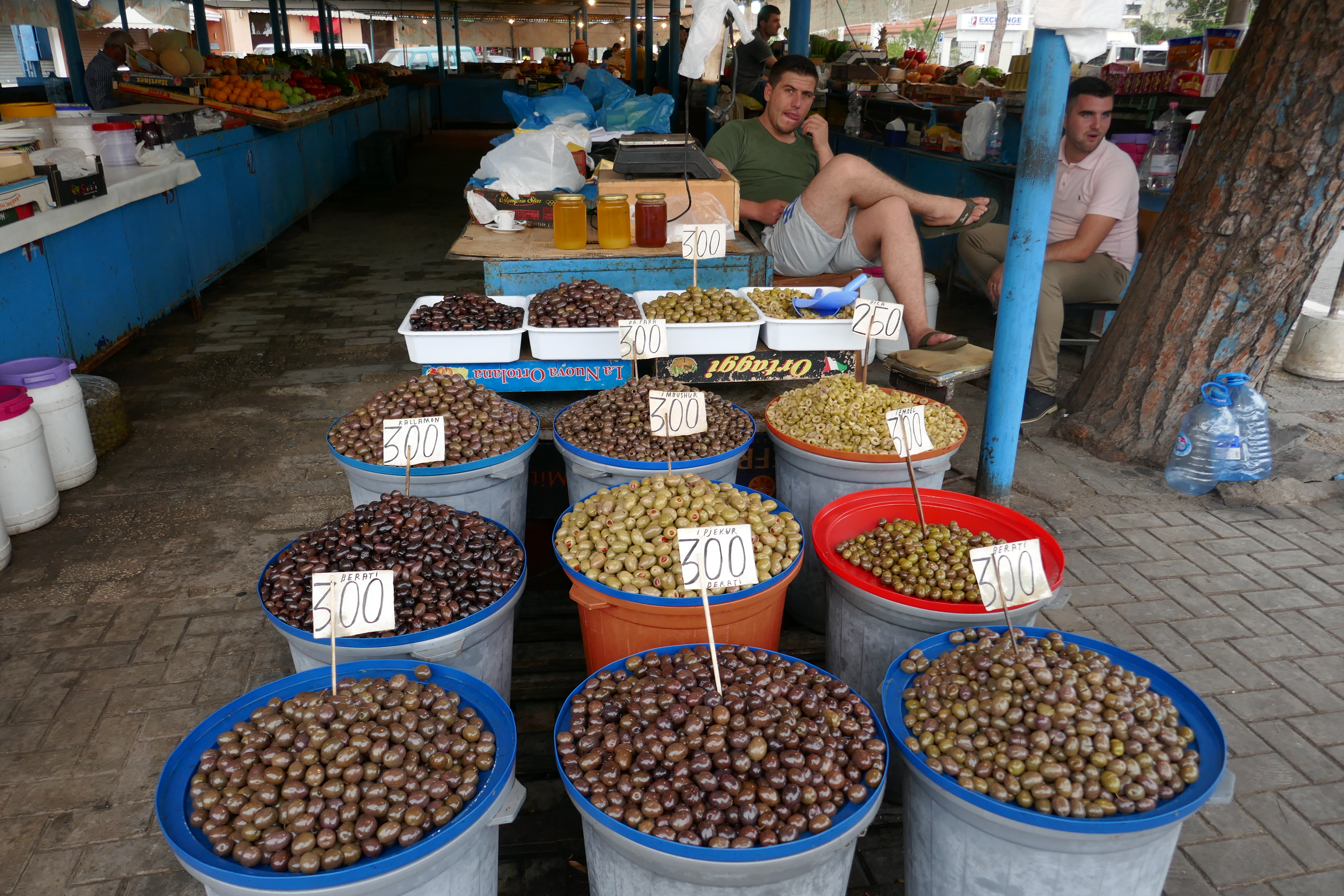 lebensmittel food markt market menschen people oliven olives tirana